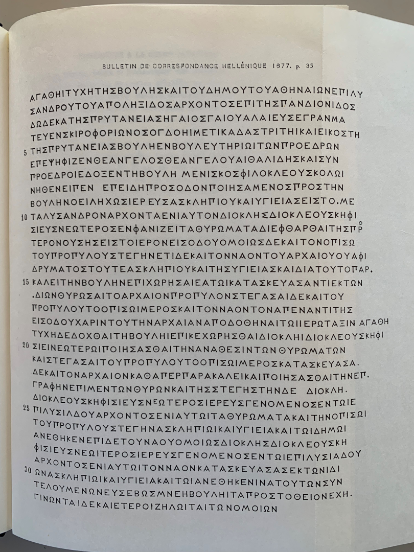 La trascrizione è opera di Paul Girard, ellenista, archeologo ed epigrafo francese.