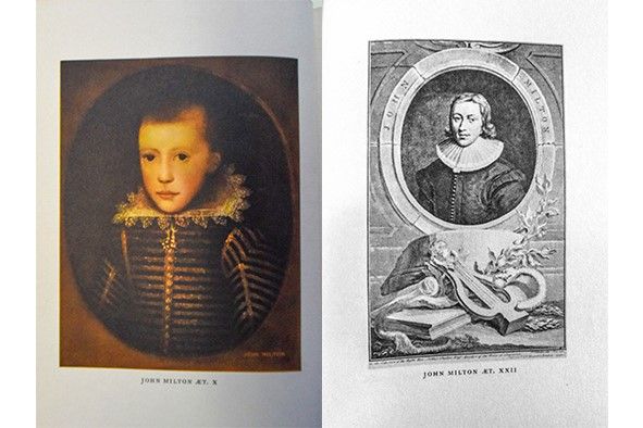 Due ritratti di John Milton (1608-1674): sulla sinistra un dipinto del poeta all’età di dieci anni, eseguito da Cornelis Janssens van Ceulen nel 1618; sulla destra, la raffigurazione di Milton all’età di ventidue anni di un artista anonimo del XVII secolo.