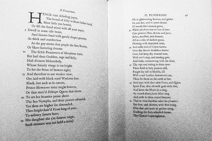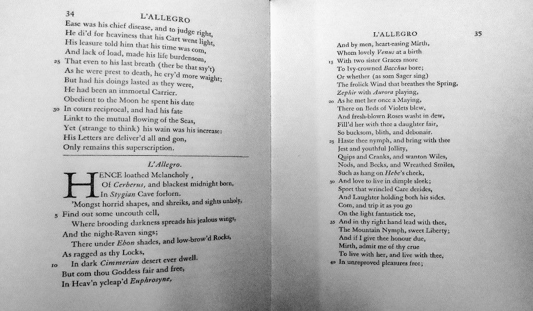 Nei due componimenti l’autore contrappone gli stili di vita dell’uomo allegro e dell’uomo contemplativo e con un’arte ancora molto formale, in cui è assente ogni enfasi morale, l’andamento musicale si adegua perfettamente alle immagini. Entrambe le poesie pullulano di immagini tratte dalla mitologia classica, dalla tradizione medievale e dal folclore inglese.